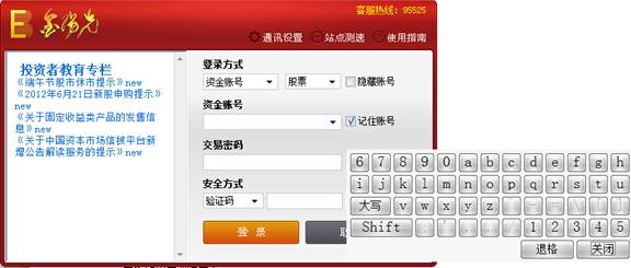 【软键盘】按钮,可用软键盘输入密码,可提高帐号的安全性。点击后会出现如下图所示的界面: