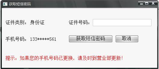 核实证件类型、手机号码无误之后,输入证件号码,并点击【获取短信密码】,稍后片刻,便可收到含有短信密码的短信息。输入该短信密码,并点击登陆,即可登陆交易。