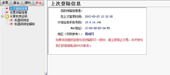 如果在一台机器上绑定了资金账号,使用该账号在其他电脑上登陆则会提示进入受限菜单。