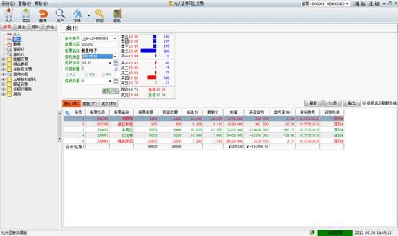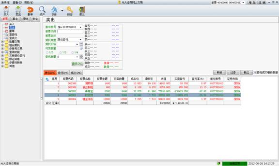 当用户在输入股票代码时,右边会显出一个选择框,而且在填写股票代码时可支持拼音。在右边的持仓表按右键选择“市价卖出”来操作。市价卖出的基本功能与卖出的功能界面相同。