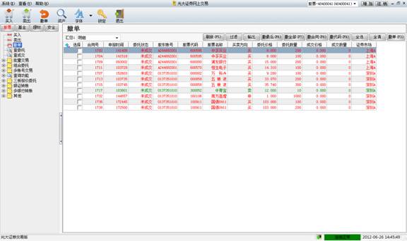 如当前没有数据,则会显示“无记录”。当日委托中分两种显示方式:明细与委托汇总